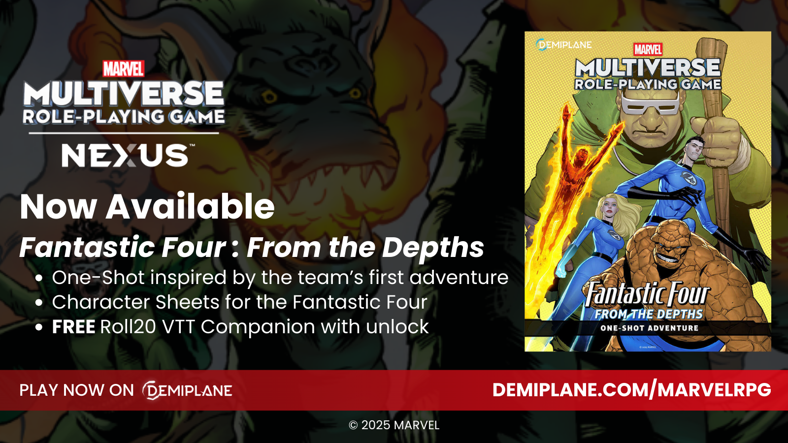 Note: The Fantastic Four: From the Depths Roll20 VTT Companion that comes free with your Demiplane unlock will be coming shortly! The team is almost done!